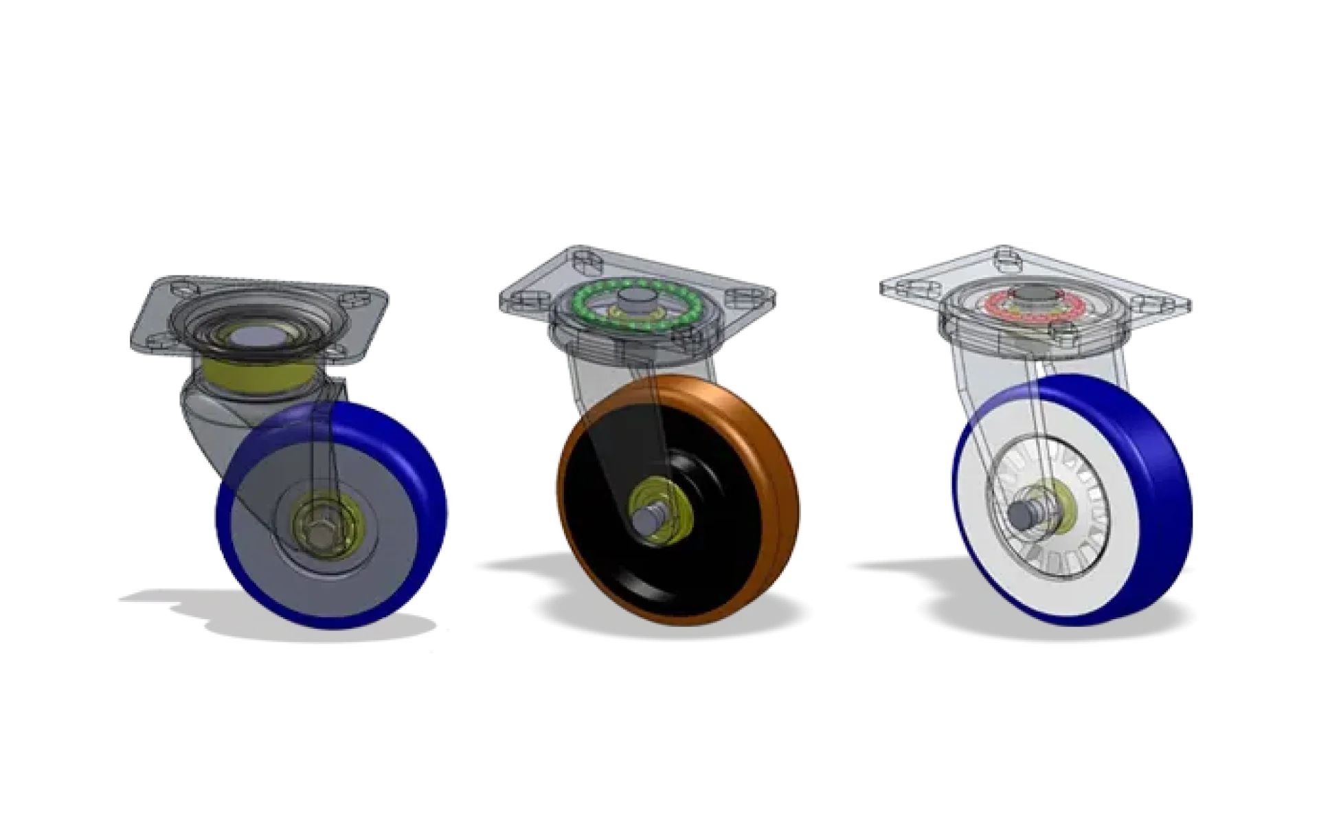 - ลูกล้อโพลียูรีเทนระบบฉีดสอดล็อค แก้ปัญหาล้อหลุดร่อน ไม่เกิดสนิม สึกหรอช้า ทนน้ำและเคมี